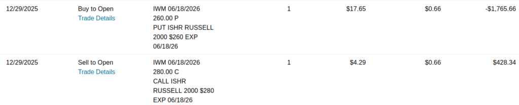 To that end, I’ve been investing a great deal in IWM for a while now, the earliest post I could find on this blog goes back to this post on August 2024. IWM was trading at $208 back then and I was executing covered calls on IWM until I switched to net credit collars most recently.